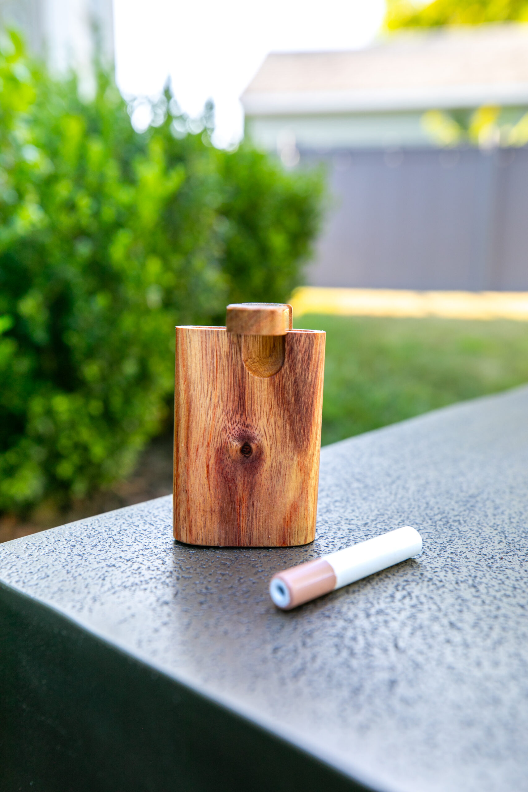 These pocket sized dugouts include a cigarette pipe and a storage compartment. Larges measure 3/4″x1 13/16″x4″; Smalls measure 3/4″x1 13/16″x3″.