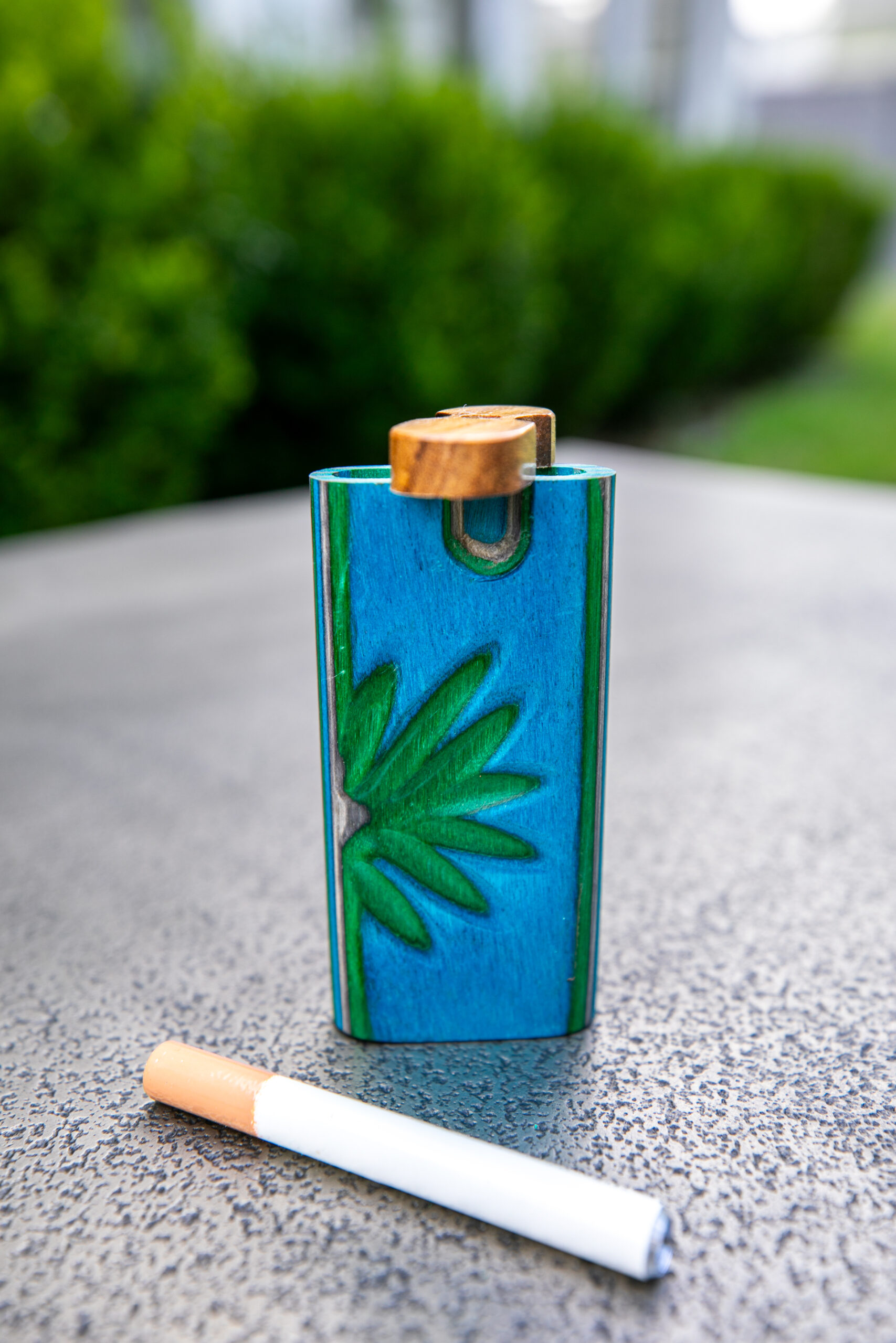 These pocket sized dugouts include a cigarette pipe and a storage compartment. Larges measure 3/4″ x 1 13/16″ x 4″.